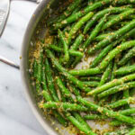This green bean recipe keeps things simple with just a handful of ingredients. Jarred pesto brings instant flavor with no work involved and lemon brightens everything back up for that homemade, fresh flavor.